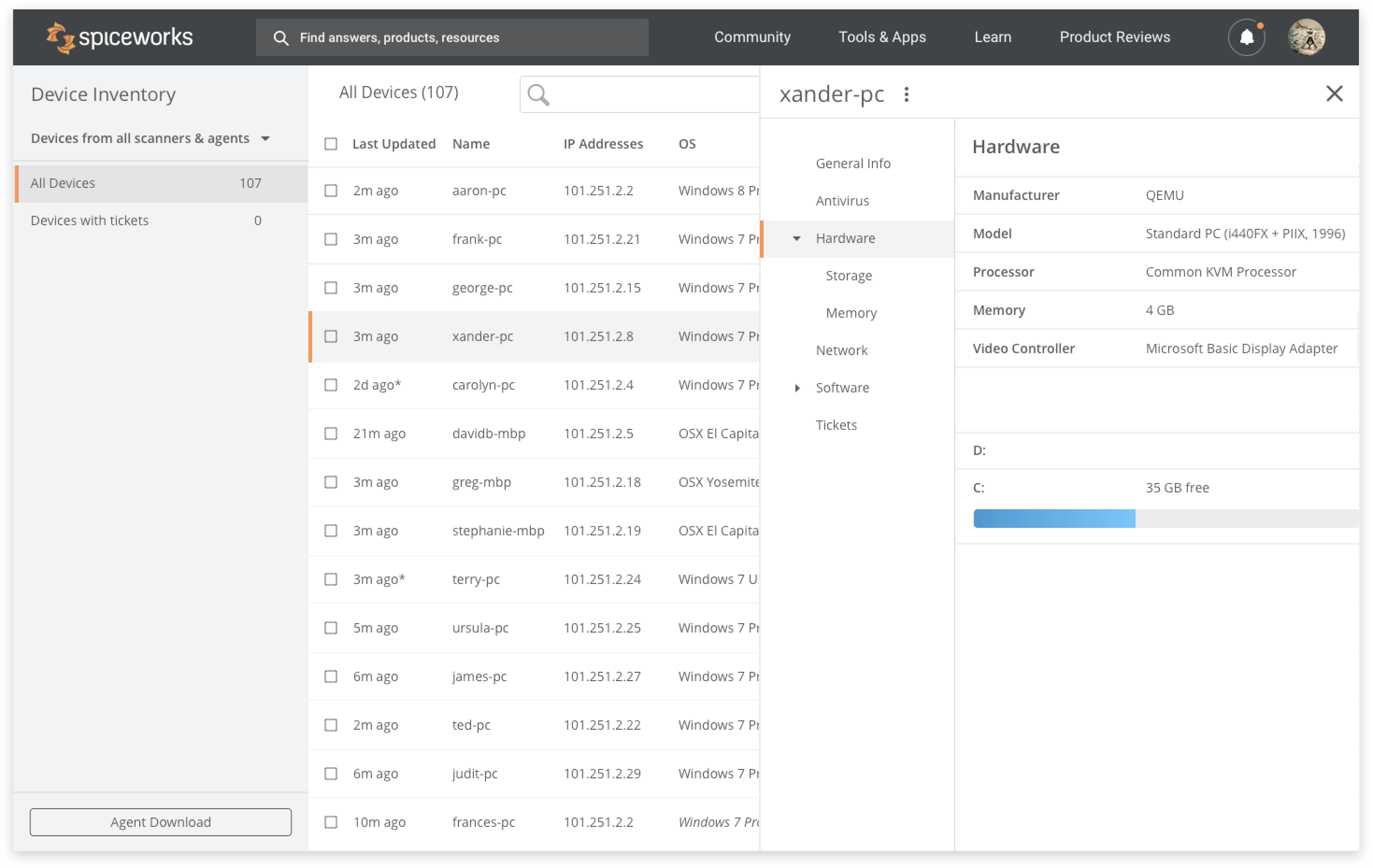 - Spiceworks – The help desk integration ties support tickets to any required assets, making it easy to designate devices or software to the worker requesting them. Plus, network monitoring will automatically find any assets connected to a network. Asset details will be auto-logged in reports.